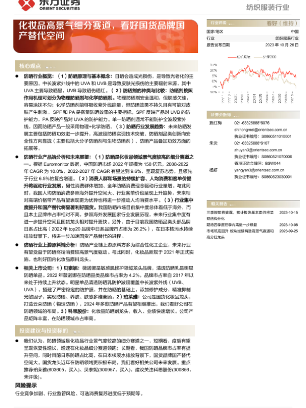 【东方证券】【20231026】纺织服装行业:化妆品高景气细分赛道,看好国货品牌国产替代空间-26页