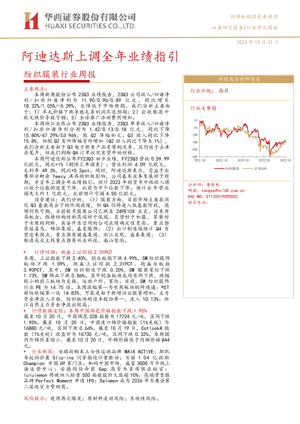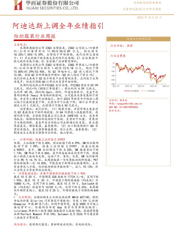 【华西证券】【20231021】20231021-华西证券-纺织服装行业周报:阿迪达斯上调全年业绩指引-30页
