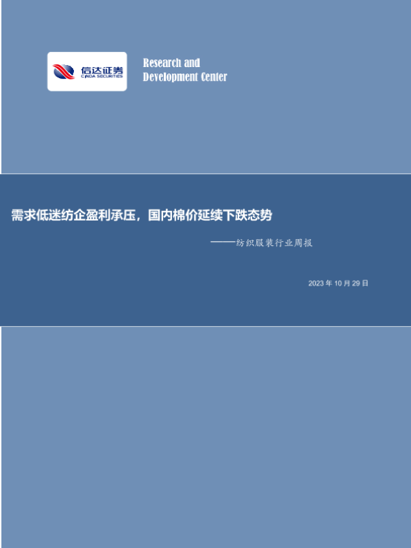 【信达证券】【20231029】20231029-信达证券-纺织服装行业周报:需求低迷纺企盈利承压,国内棉价延续下跌态势-14页