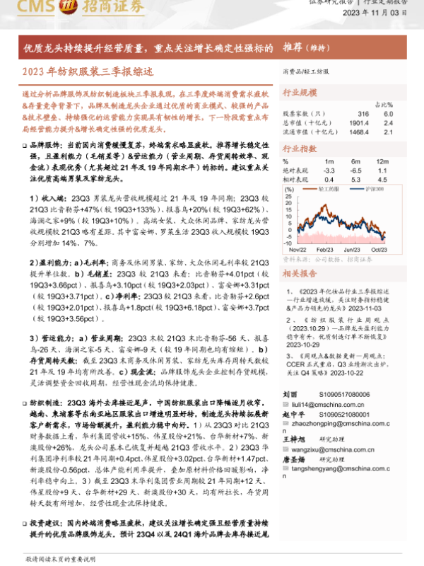【海通证券】【20231103】2023年纺织服装三季报综述:优质龙头持续提升经营质量,重点关注增长确定性强标的-15页