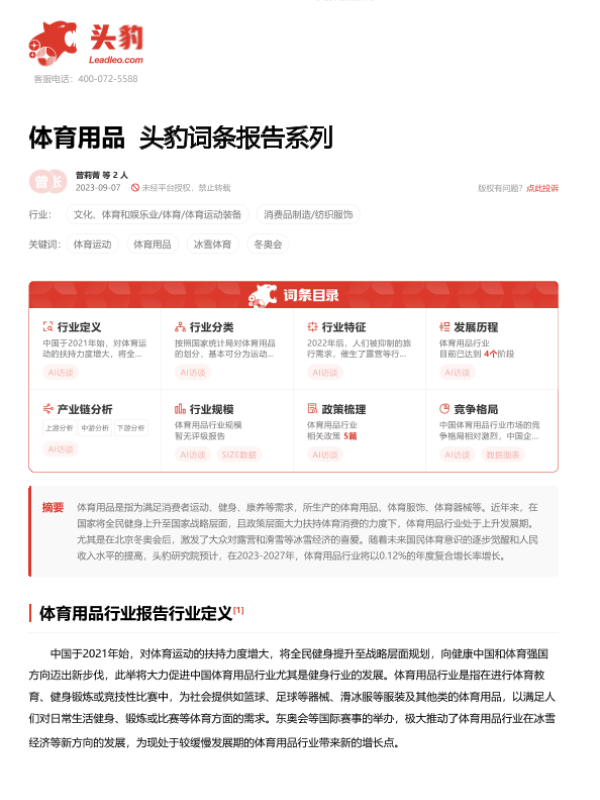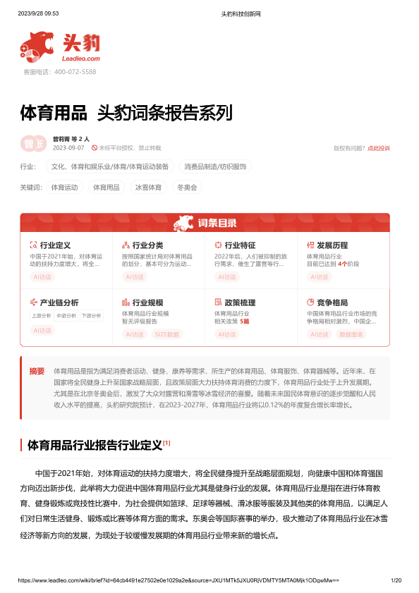 【头豹研究院】【202309】体育用品 头豹词条报告系列-20页