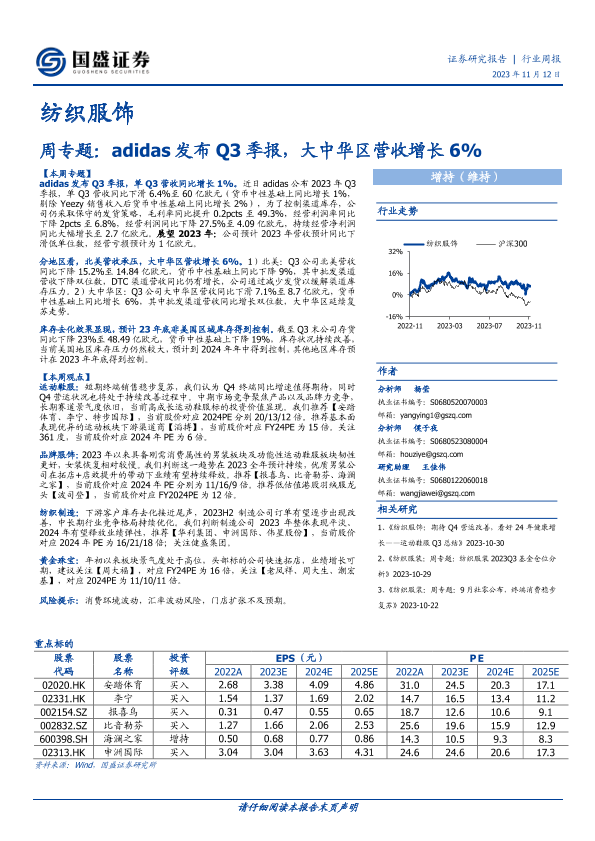 【国盛证券】【20231112】纺织服饰周专题:adidas发布Q3季报,大中华区营收增长6%-14页