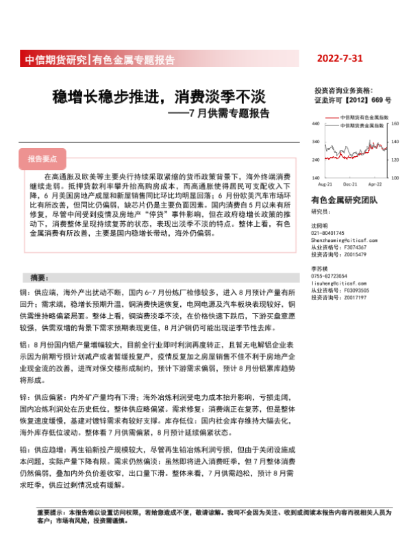 【中信期货】【20220731】7月供需专题报告:稳增长稳步推进,消费淡季不淡-47页