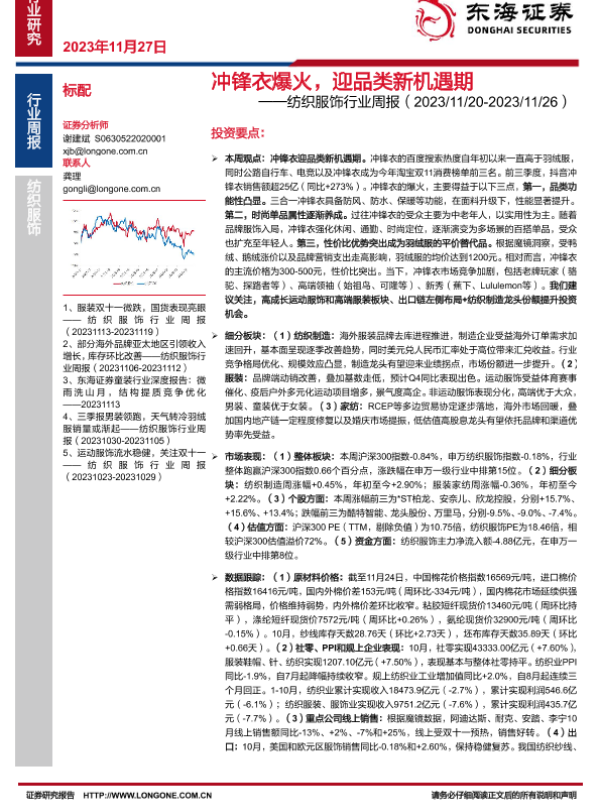 【东海证券】【20231127】20231127-东海证券-纺织服饰行业周报:冲锋衣爆火,迎品类新机遇期-12页