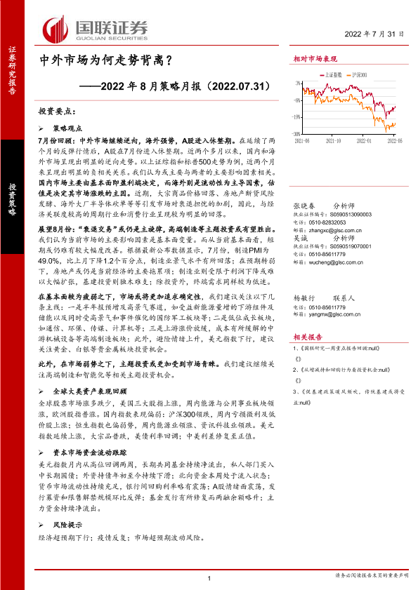 【国联证券】【20220731】2022年8月策略月报:中外市场为何走势背离?-20页