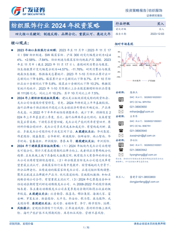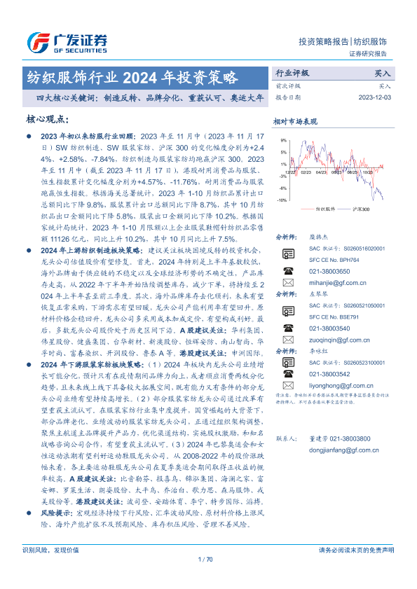 【广发证券】【20231203】纺织服饰行业2024年投资策略:四大核心关键词:制造反转、品牌分化、重获认可、奥运大年-70页