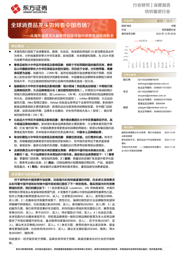 【东方证券】【20231209】纺织服装行业:从海外消费龙头最新财报探寻国内消费市场投资机会-18页