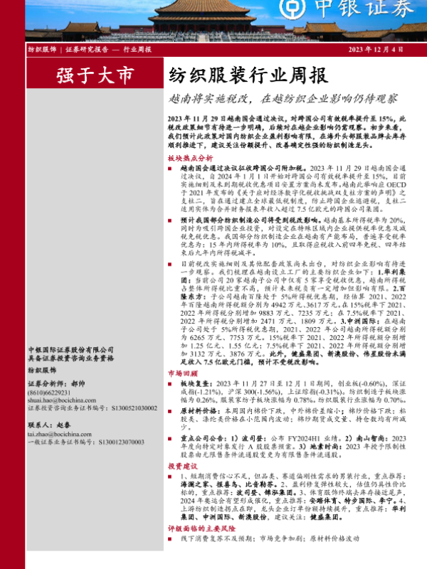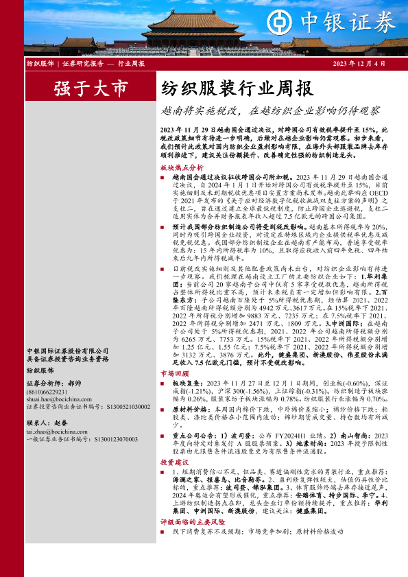 【中银证券】【20231204】20231204-中银证券-纺织服装行业周报:越南将实施税改,在越纺织企业影响仍待观察-17页