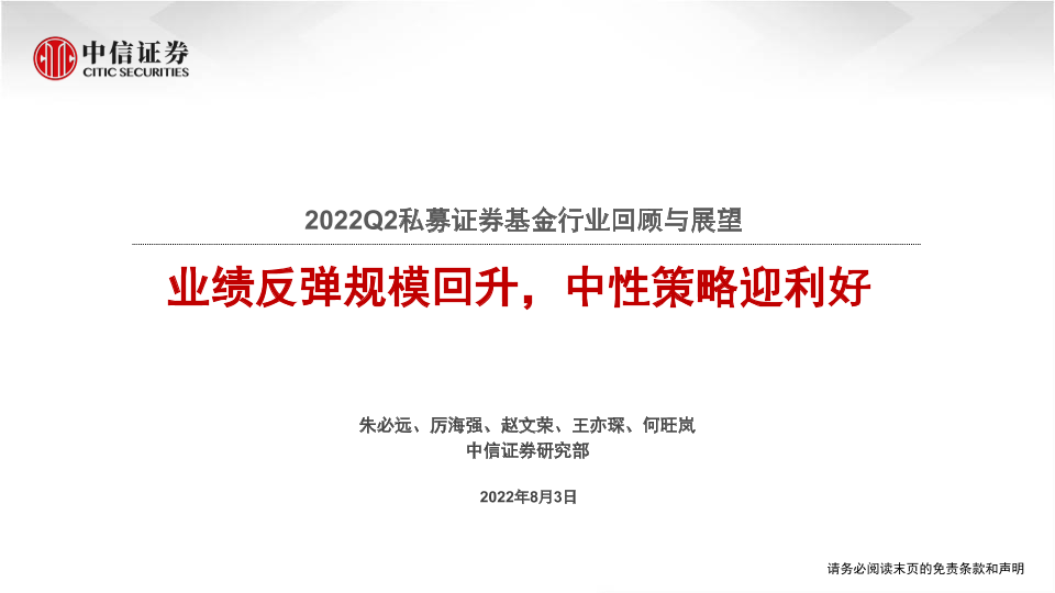 【中信证券】【20220803】2022Q2私募证券基金行业回顾与展望:业绩反弹规模回升,中性策略迎利好-24页