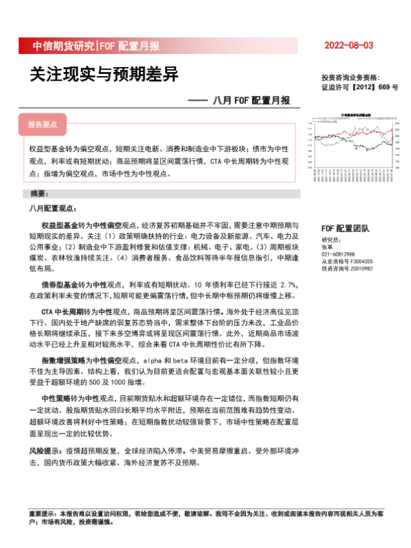 【中信期货】【20220803】八月FOF配置月报:关注现实与预期差异-18页