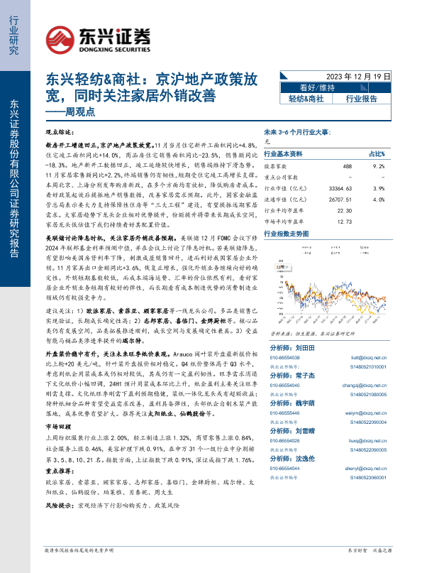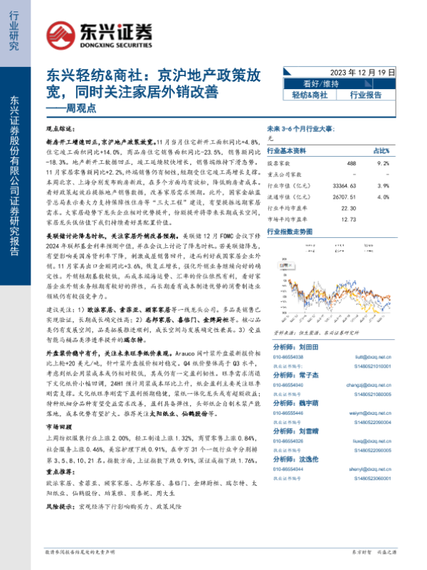 【东兴证券】【20231219】东兴轻纺&商社:京沪地产政策放宽,同时关注家居外销改善-12页