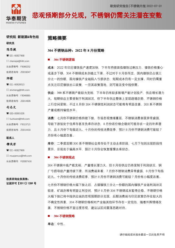 【华泰期货】【20220731】不锈钢月报:悲观预期部分兑现,不锈钢仍需关注潜在变数-21页