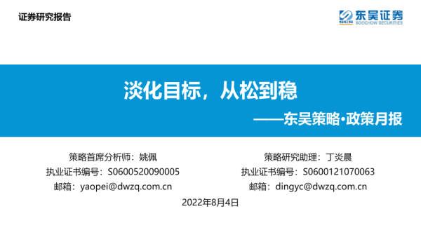 【东吴证券】【20220804】策略·政策月报:淡化目标,从松到稳-24页