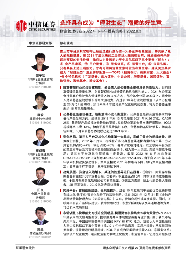 【中信证券】【20220803】财富管理行业2022年下半年投资策略:选择具有成为“理财生态”潜质的好生意-28页