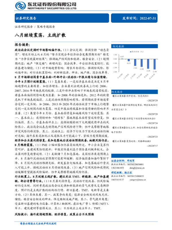 【东北证券】【20220731】策略专题报告:八月继续震荡,主线扩散-28页