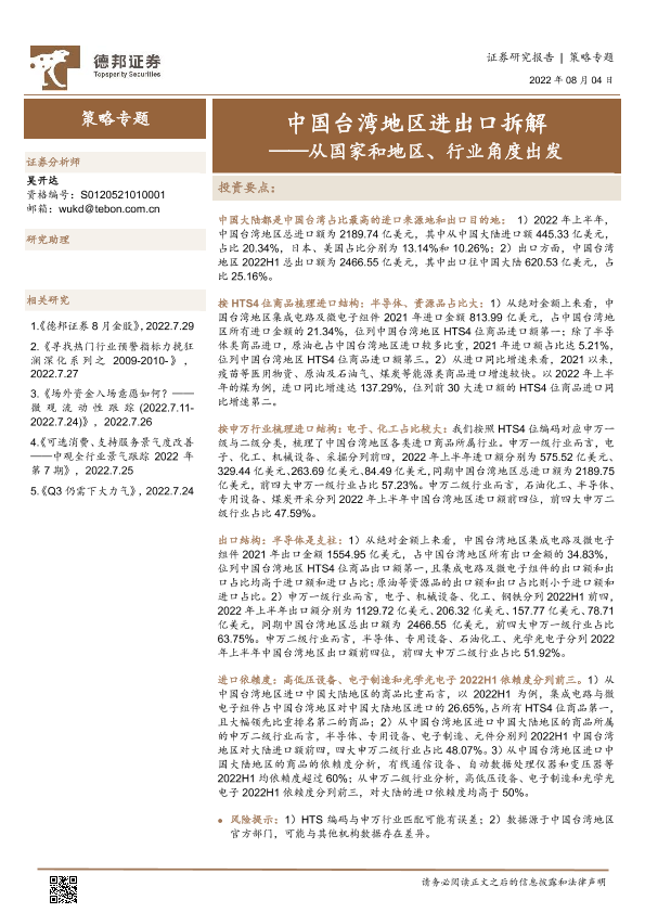 【德邦证券】【20220804】从国家和地区、行业角度出发:中国台湾地区进出口拆解-17页