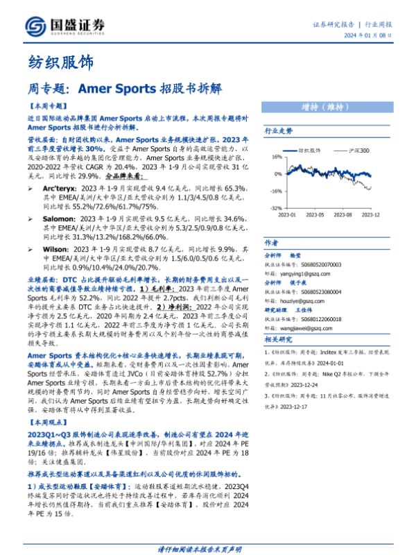 【国盛证券】【20240108】纺织服饰周专题:Amer Sports招股书拆解-22页