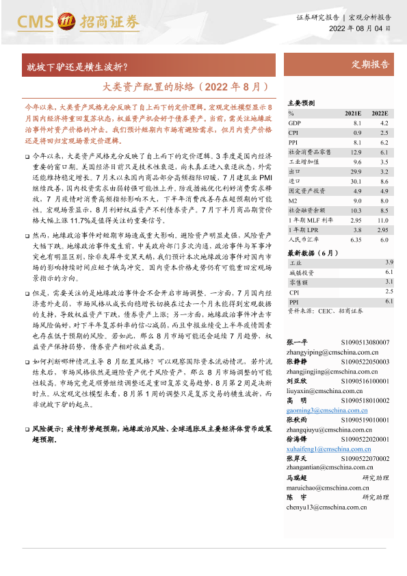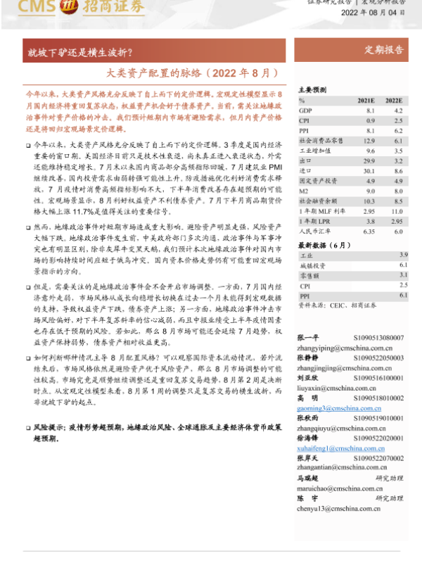 【海通证券】【20220804】大类资产配置的脉络(2022年8月):就坡下驴还是横生波折?-20页