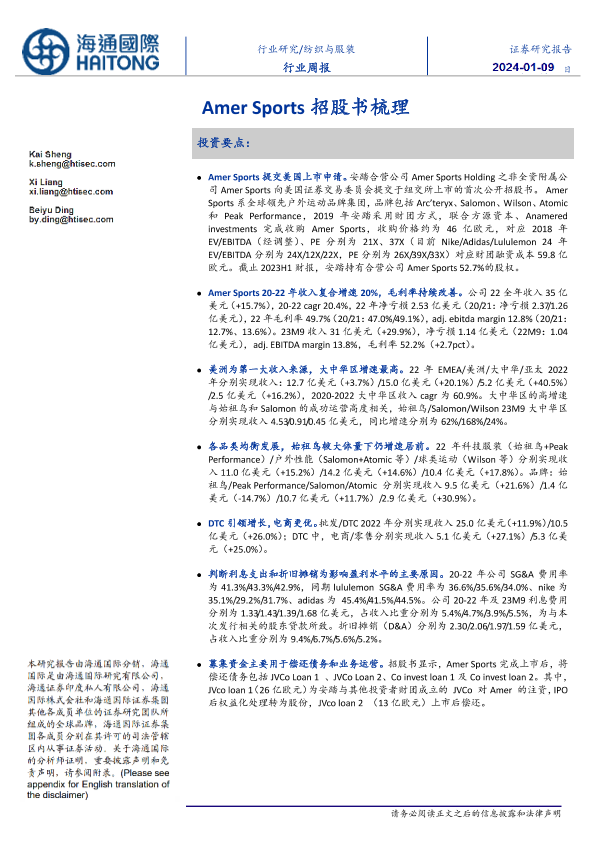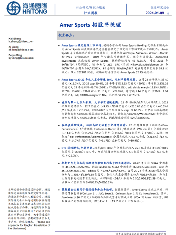 【海通国际】【20240109】20240109-海通国际-纺织与服装行业周报:Amer Sports招股书梳理-16页