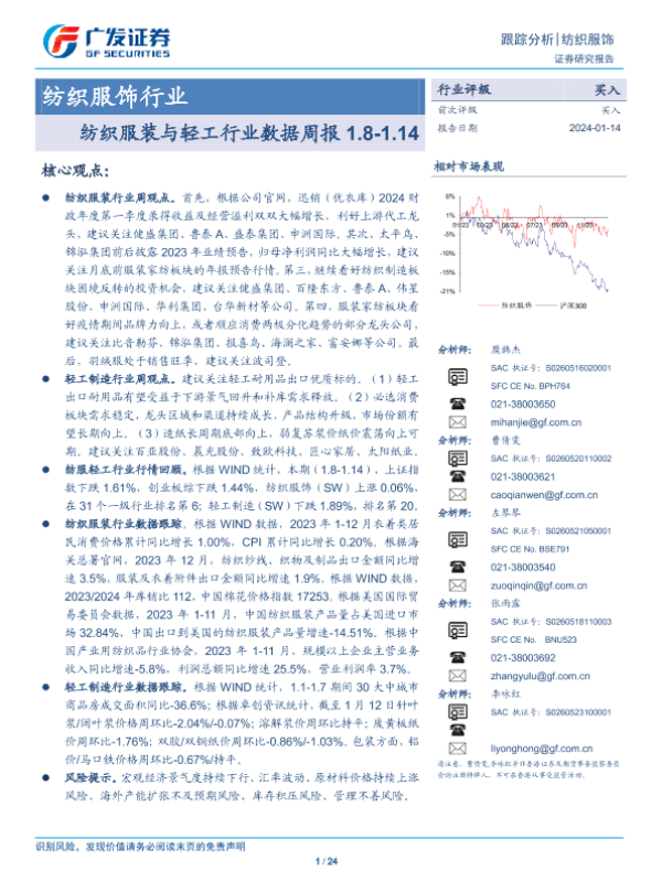 【广发证券】【20240114】20240114-广发证券-纺织服装与轻工行业数据周报1.8-1.14-24页