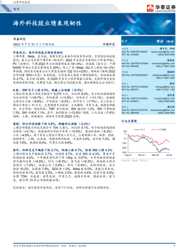 【华泰证券】【20220731】电子行业专题研究:海外科技股业绩表现韧性-21页