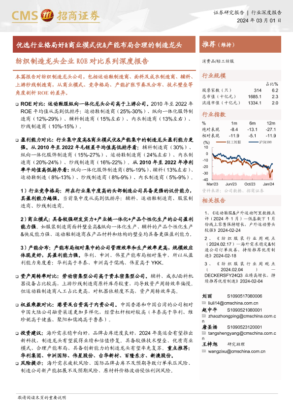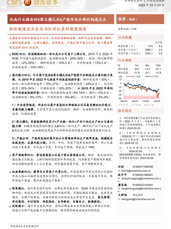 【海通证券】【20240301】纺织制造龙头企业ROE对比系列深度报告:优选行业格局好&商业模式优&产能布局合理的制造龙头-19页