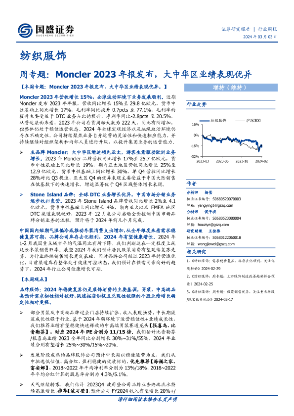 【国盛证券】【20240303】20240303-国盛证券-纺织服饰行业周报:周专题:Moncler 2023年报发布,大中华区业绩表现优异-13页