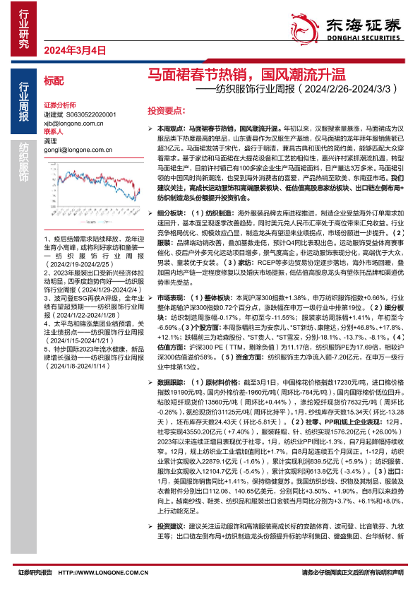 【东海证券】【20240304】20240304-东海证券-纺织服饰行业周报:马面裙春节热销,国风潮流升温-12页