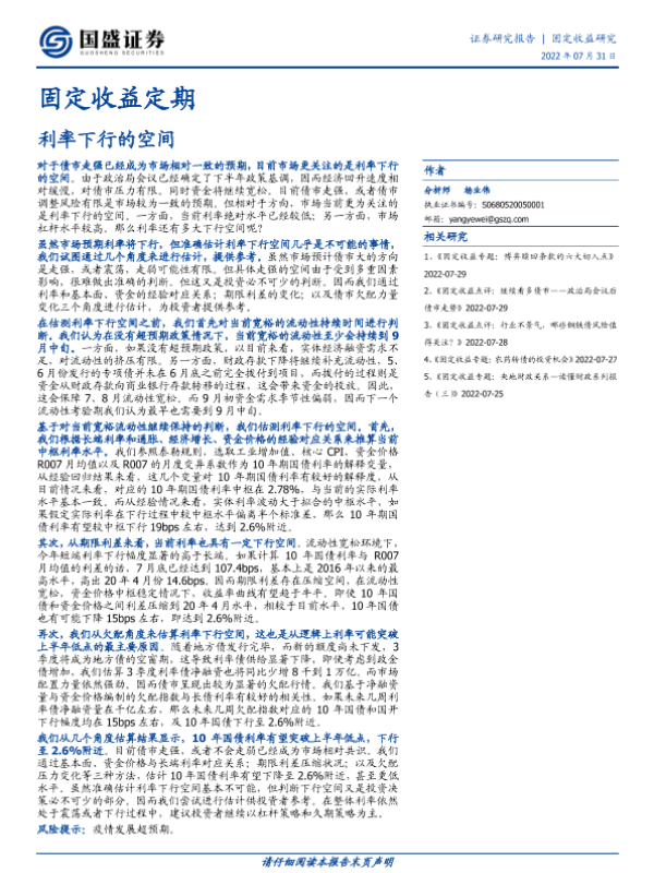 【国盛证券】【20220731】固定收益定期:利率下行的空间-17页