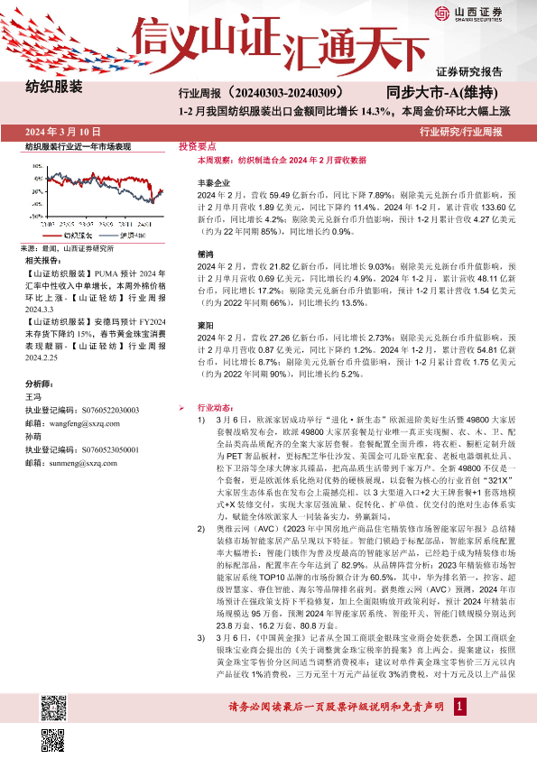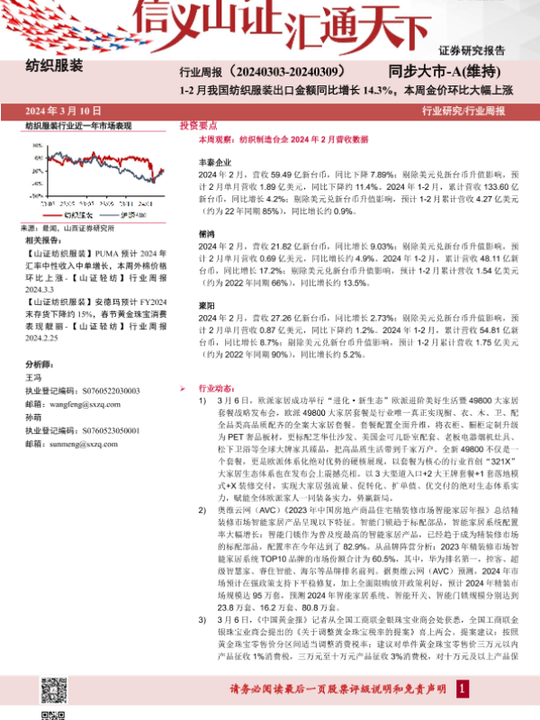 【山西证券】【20240310】纺织服装行业周报-21页