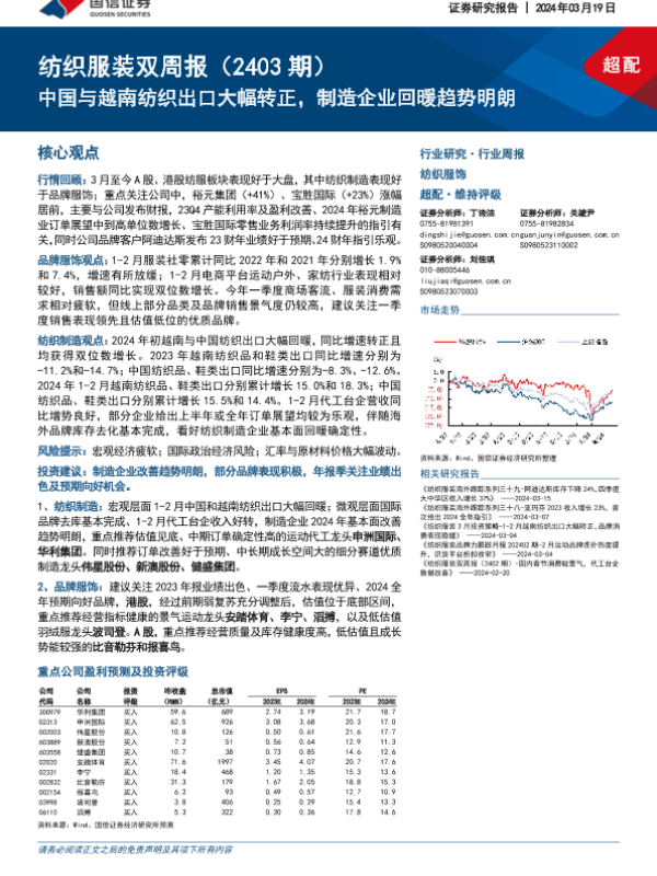 【国信证券】【20240319】20240319-国信证券-纺织服装双周报(2403期):中国与越南纺织出口大幅转正,制造企业回暖趋势明朗-15页