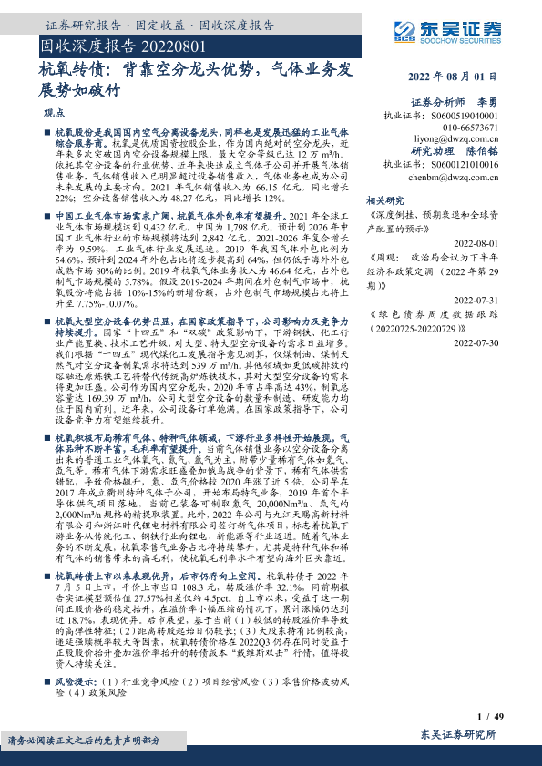 【东吴证券】【20220801】杭氧转债:背靠空分龙头优势,气体业务发展势如破竹-49页