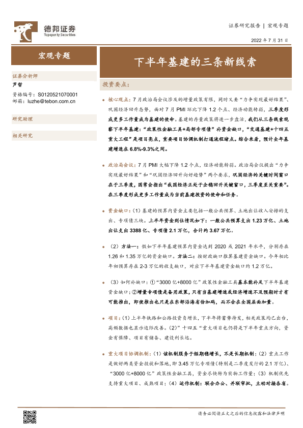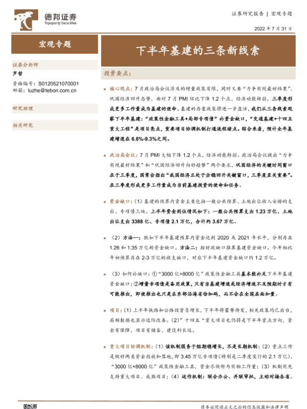 【德邦证券】【20220731】宏观专题:下半年基建的三条新线索-19页