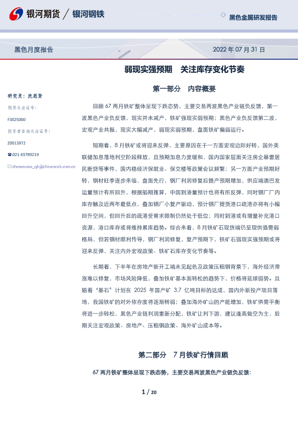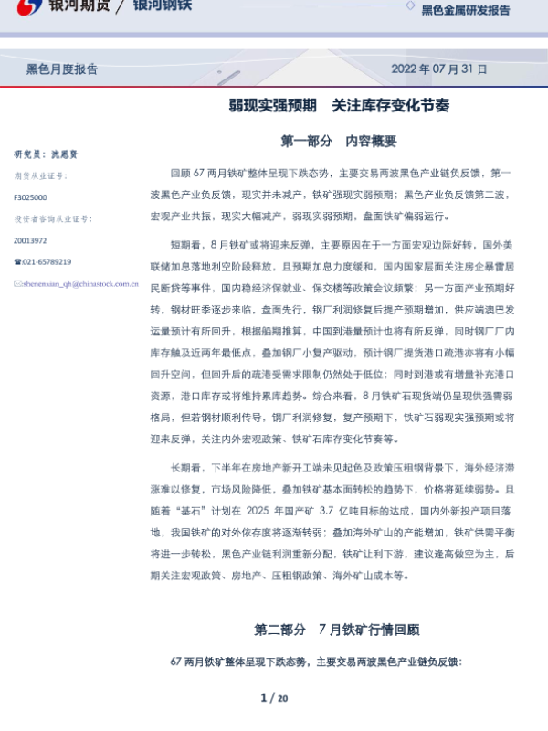 【银河期货】【20220731】黑色月度报告:弱现实强预期,关注库存变化节奏-20页