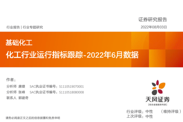 【天风证券】【20220803】化工行业运行指标跟踪:2022年6月数据-35页