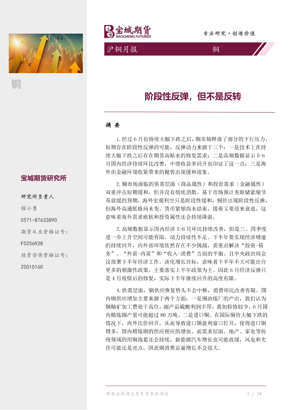 【宝城期货】【20220731】沪铜月报:阶段性反弹,但不是反转-22页