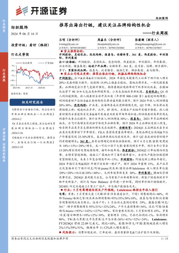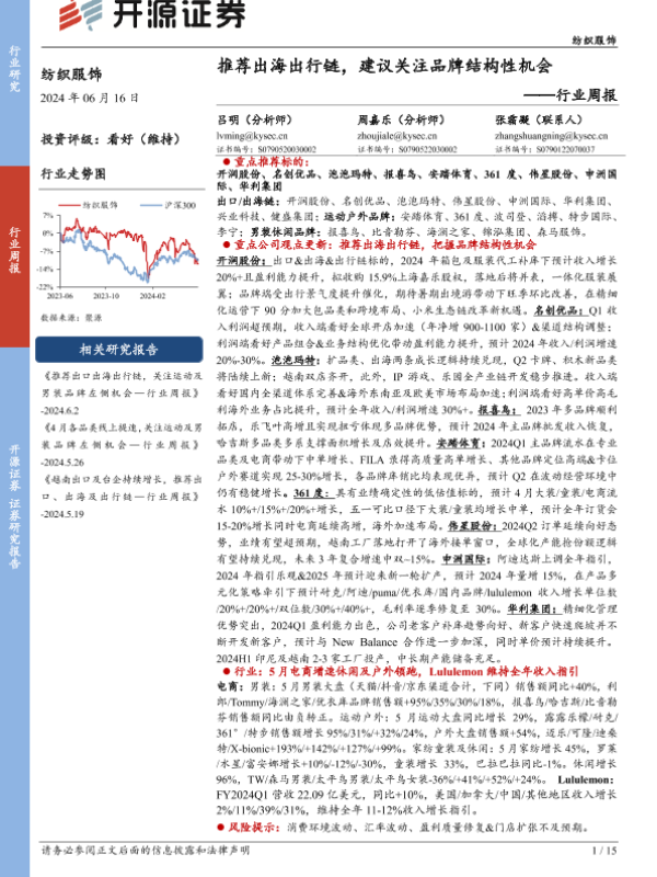 【开源证券】【20240616】纺织服饰行业周报:推荐出海出行链,建议关注品牌结构性机会-15页