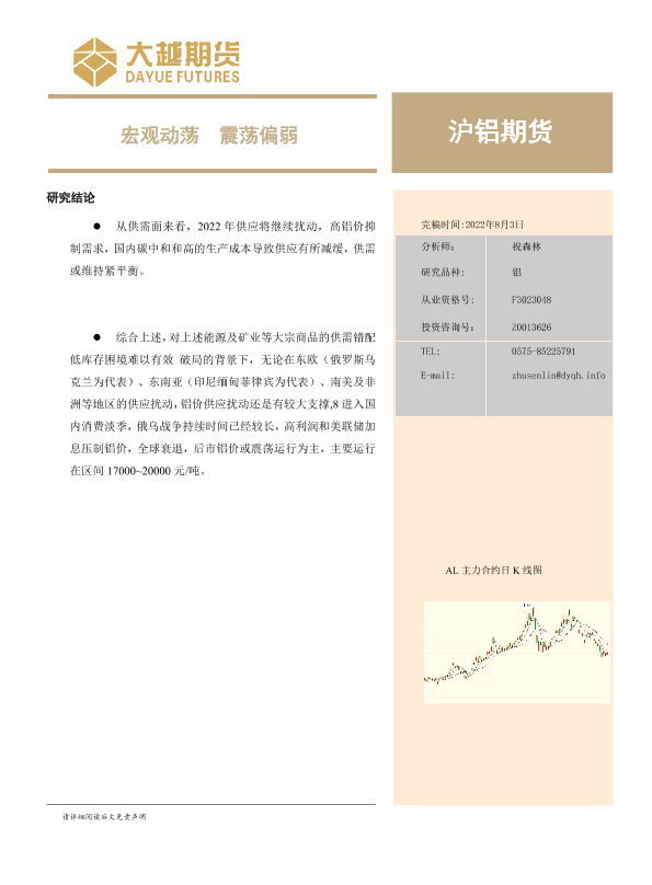 【大越期货】【20220803】沪铝月度报告:宏观动荡,震荡偏弱-21页