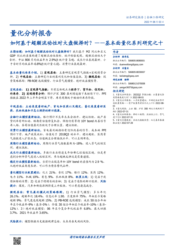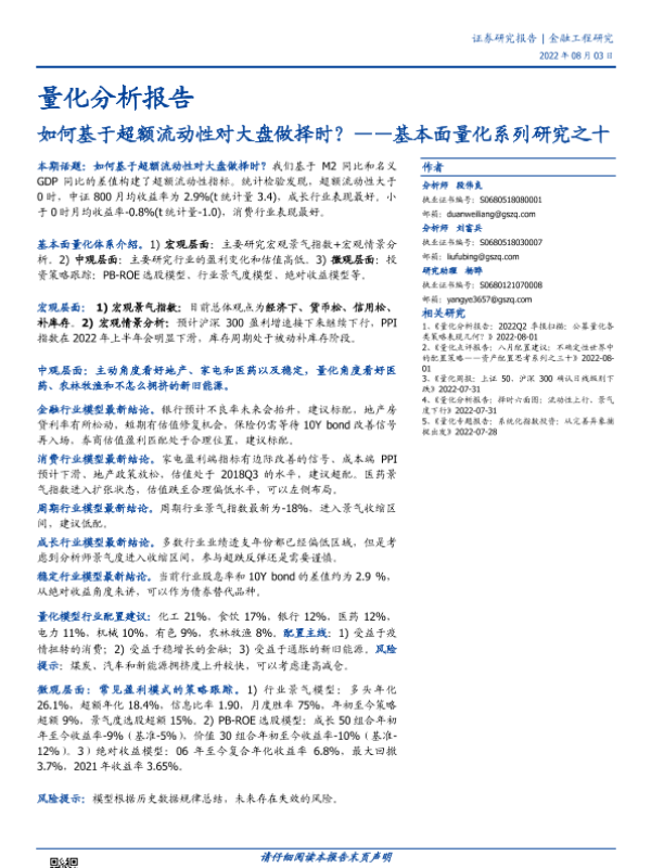 大盘择时 宏观经济 超额流动性 量化分析 金融工程