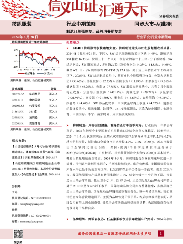 【山西证券】【20240628】纺织服装行业中期策略:制造订单强恢复,品牌消费弱复苏-31页