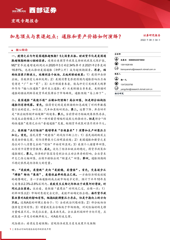 【西部证券】【20220804】加息顶点与衰退起点:通胀和资产价格如何演绎?-19页