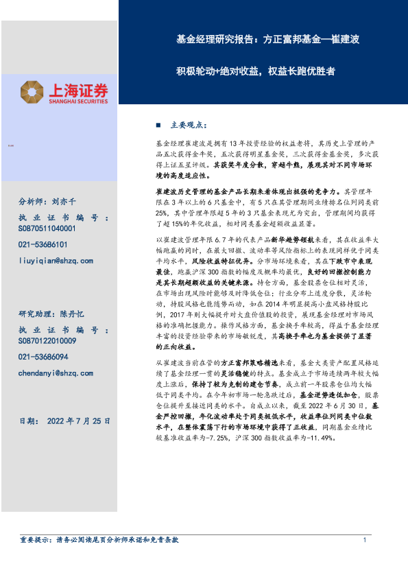 【上海证券】【20220725】基金经理研究报告:方正富邦基金,崔建波,积极轮动+绝对收益,权益长跑优胜者-17页