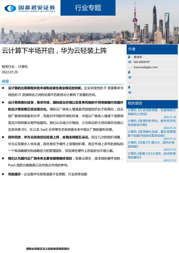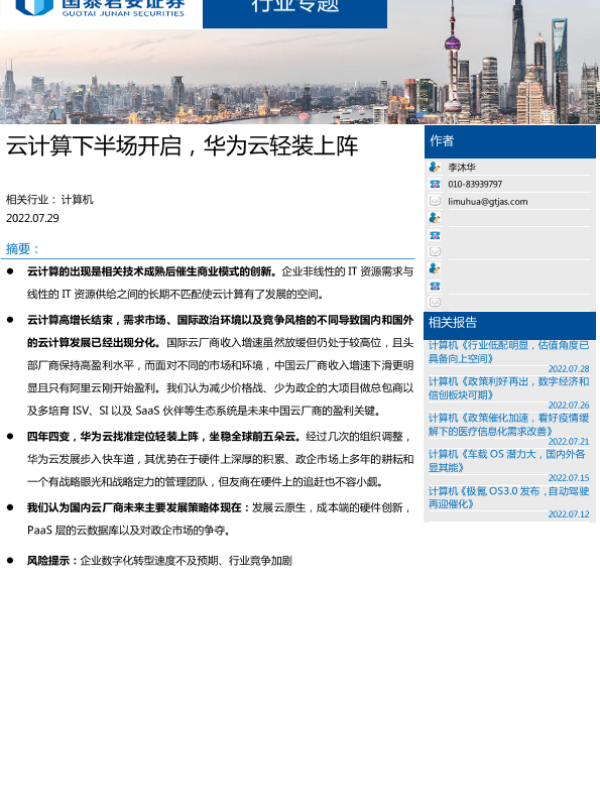 【国泰君安证券】【20220729】云计算下半场开启,华为云轻装上阵-18页
