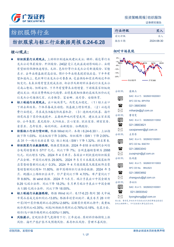 【广发证券】【20240630】纺织服装与轻工行业数据周报-27页
