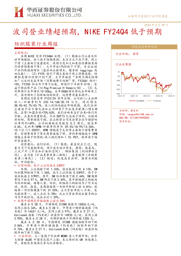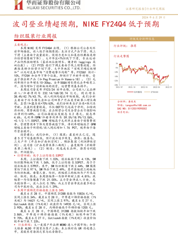 【华西证券】【20240629】20240629-华西证券-纺织服装行业周报:波司登业绩超预期,NIKE FY24Q4低于预期-28页