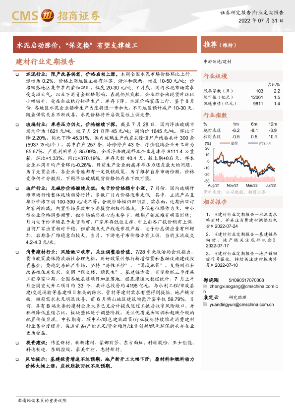 【海通证券】【20220731】建材行业定期报告:水泥启动涨价,“保交楼”有望支撑竣工-23页