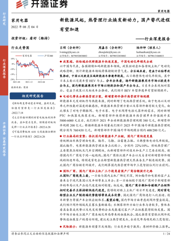 【开源证券】【20220804】家用电器行业深度报告:新能源风起,热管理行业焕发新动力,国产替代进程有望加速-24页