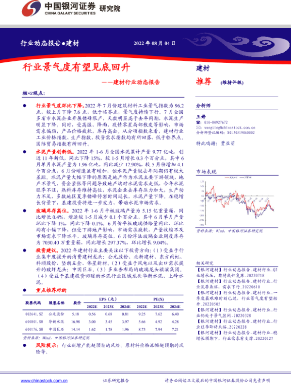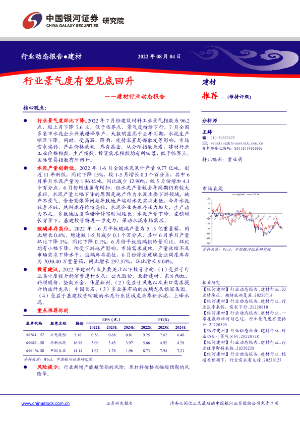【银河证券】【20220804】建材行业动态报告:行业景气度有望见底回升-16页