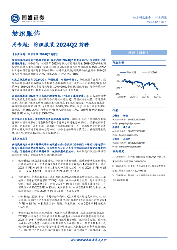 【国盛证券】【20240707】纺织服饰周专题:纺织服装2024Q2前瞻-19页
