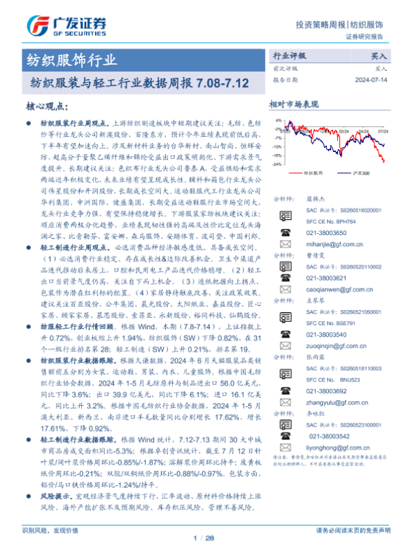 【广发证券】【20240714】20240714-广发证券-纺织服装与轻工行业数据周报-28页